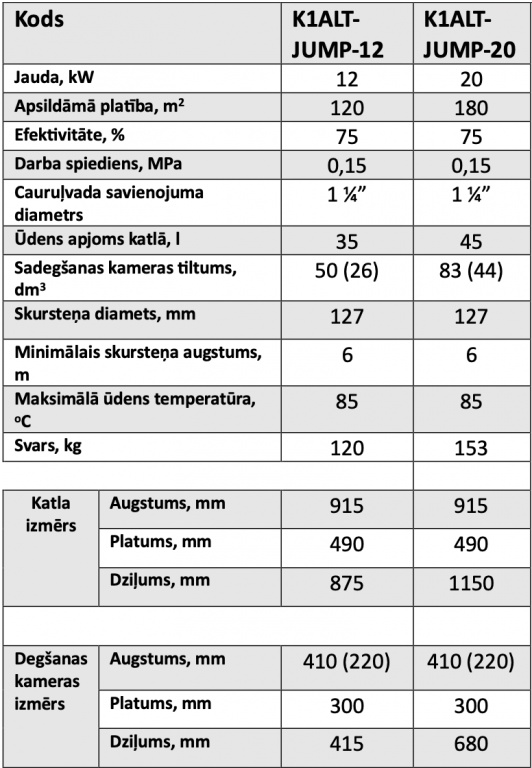 *Iespēja izmantot dažāda veida kurināmo: malka, šķelda, ogles (A klase), kokskaidu briketes, kūdras briketes (ar diametru 10-15cm);