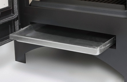 • Čuguna durvis ar vitro keramisko stiklu, kas izturīgas līdz 750 ° C.