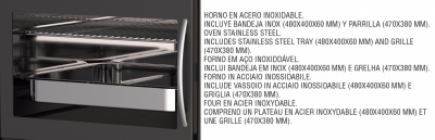 - Cepeškrāsns trauka izmēri - 480x400x60mm; cepeškrāsns restes izmēri - 470x380mm