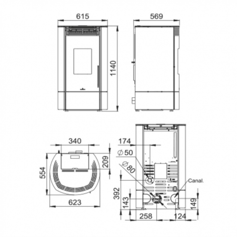 - Skursteņa diametrs: 80mm