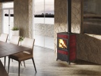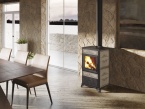 Malkas krāsns ar čuguna degkameru un keramikas dekoratīvajām plāksnēm.